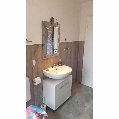 Das Tageslichtbad ist mit einer Dusche, Toilette und Waschbecken ausgestattet.